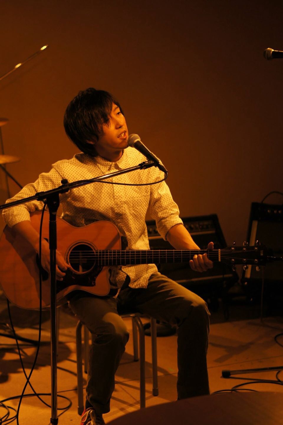 「屋上」をやってから、スタッフのつっちーと一曲、「君は太陽、僕は満月」を一緒に演奏しました◎