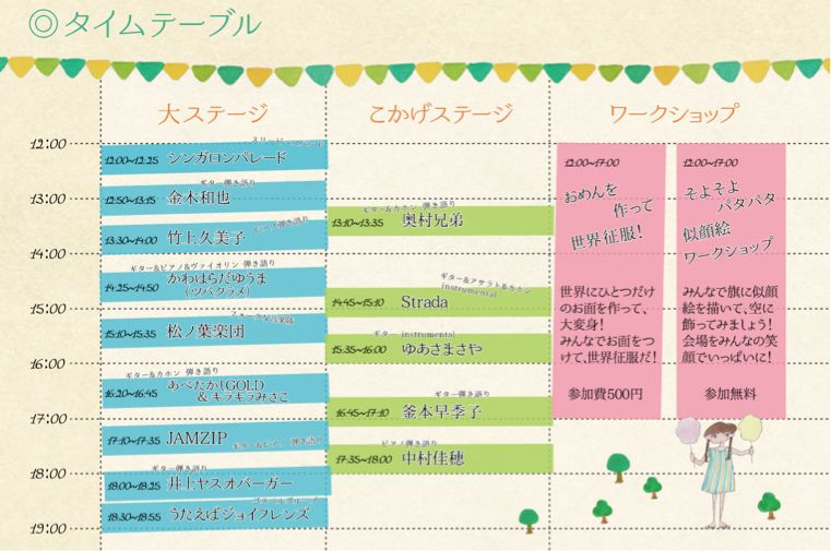 お面をつくったり、似顔絵フラッグをつくったり、ワークショップもあります◎